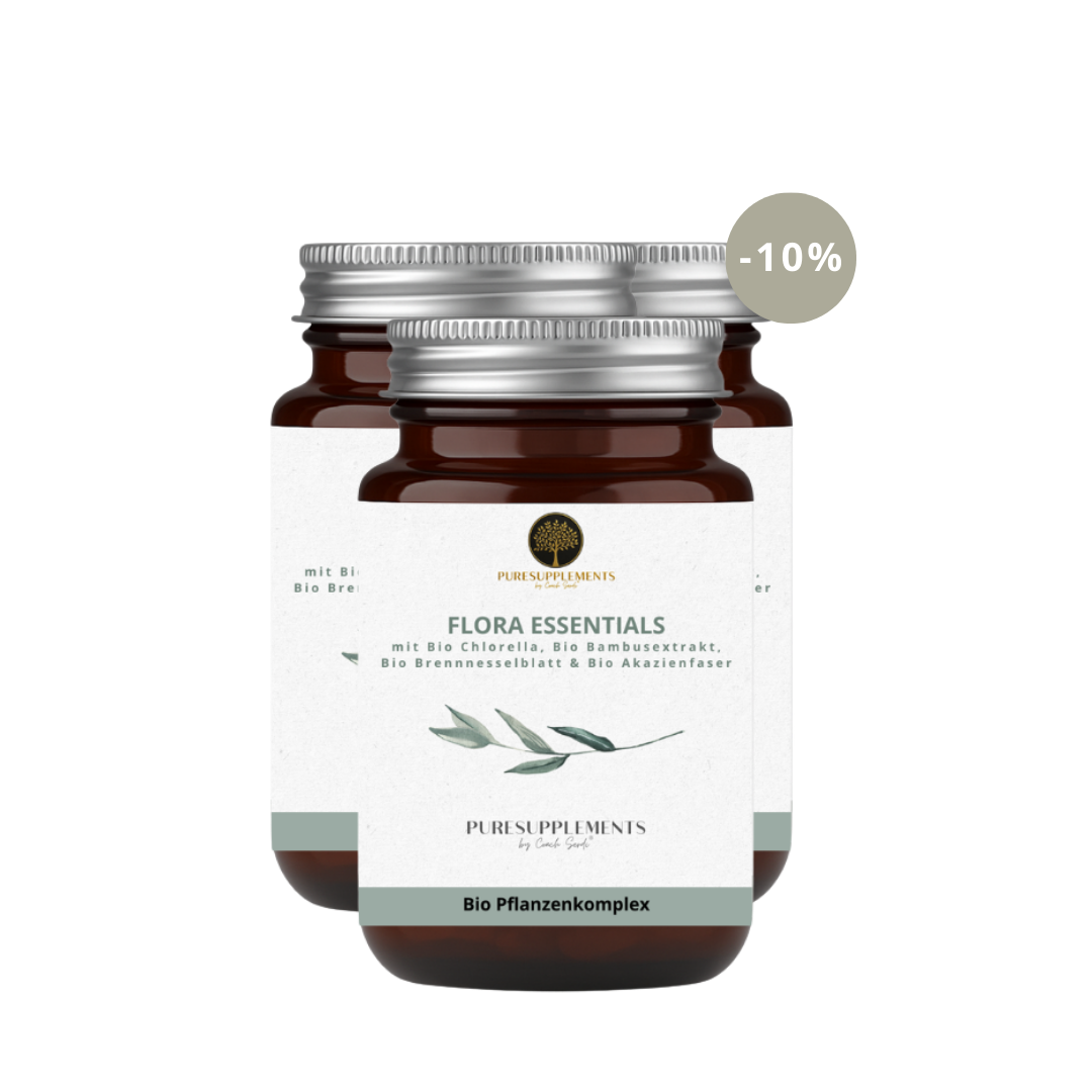Regulärer Preis €44,99Flora Essentials 4 ist ein Nahrungsergänzungsmittel mit 4 ausgewählten pflanzlichen Rohstoffen in Bio-Qualität. Die Rezeptur kombiniert Bio-Chlorella (Chlorella vulgaris), Bio-Bambusextrakt mit standardisiertem Siliciumgehalt (75 %), Bio-Brennnesselblattpulver (Urtica dioica, Wildsammlung, Erntezeit März bis Mai) sowie Bio-Akazienfaser.